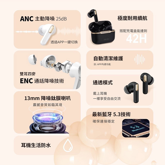 aircolor Pure Air 日系HIFI潮風 ANC/ENC降噪 真無線藍牙耳機