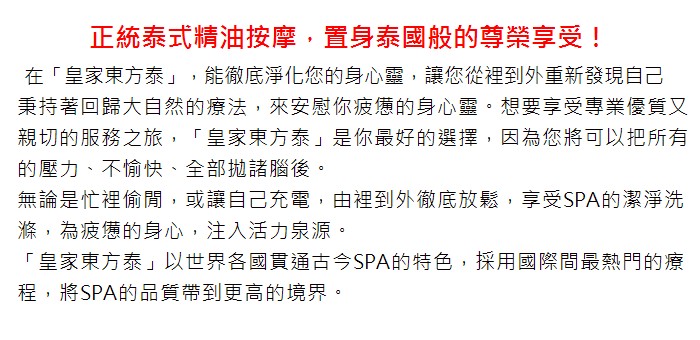 【台北】皇家東方泰SPA會館-泰經典享宴三選一100分