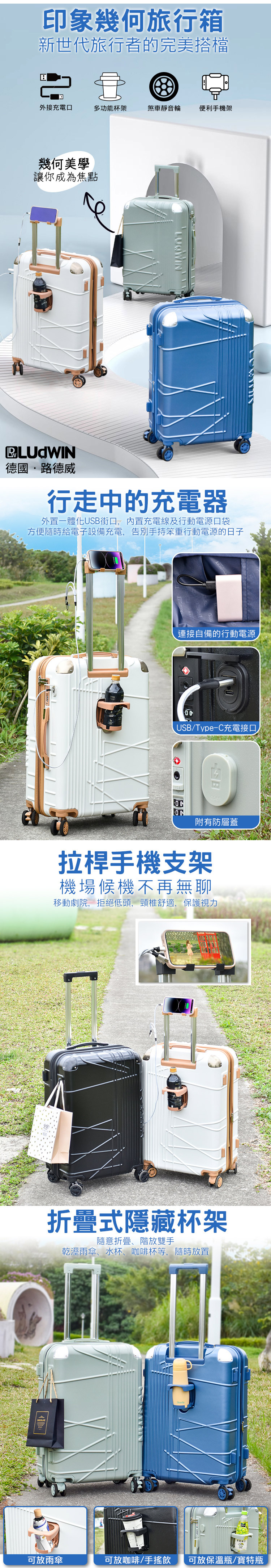 【LUDWIN 路德威】印象幾何20吋防刮防撞行李箱(多色可選)冰藍