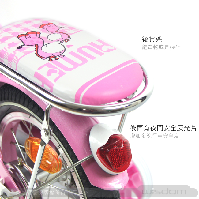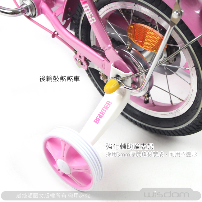 • 車身後方附有輔助輪,適合孩子學習騎乘,亦可任意拆卸安裝