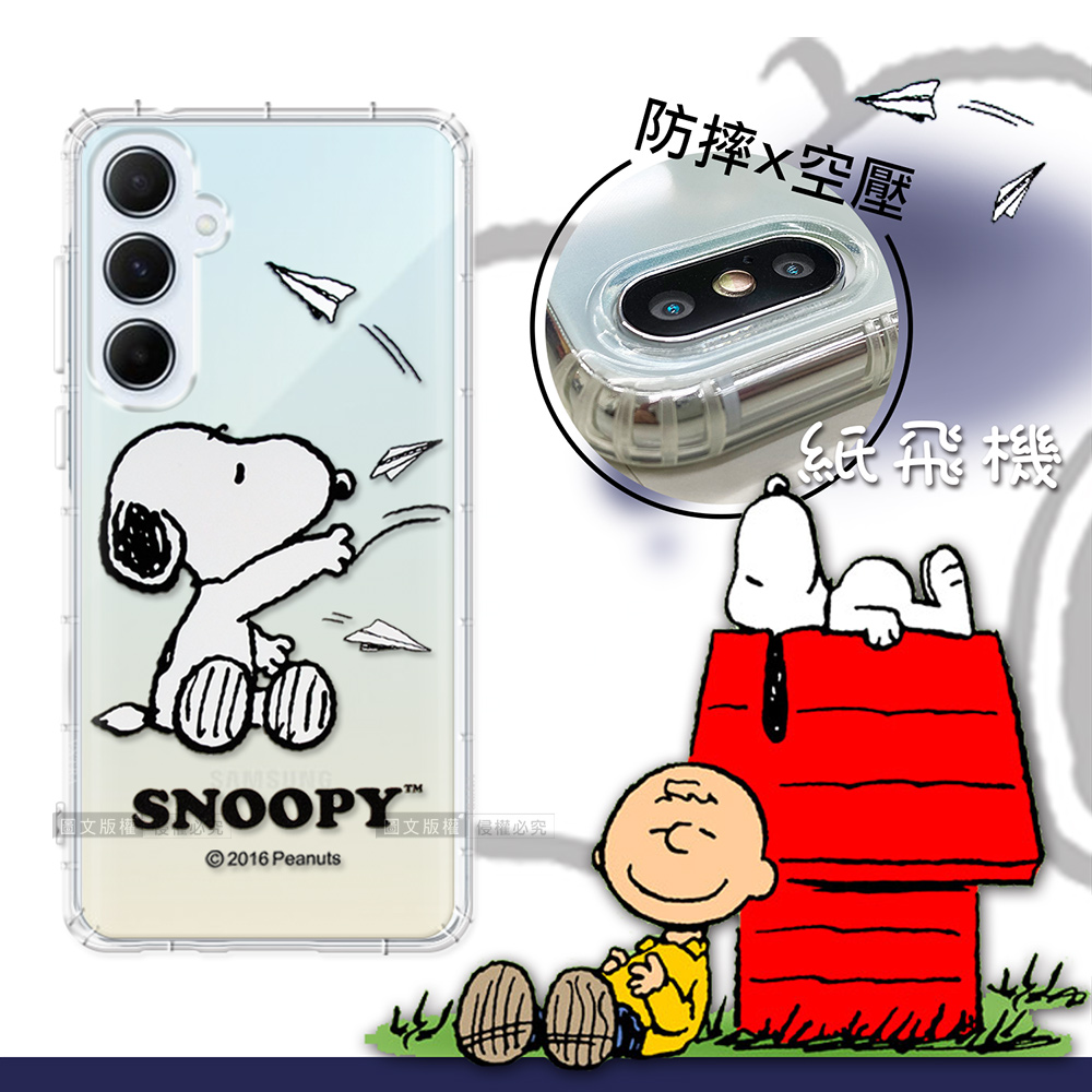 史努比/SNOOPY 正版授權 三星 Galaxy A55 5G 漸層彩繪空壓手機殼(紙飛機)