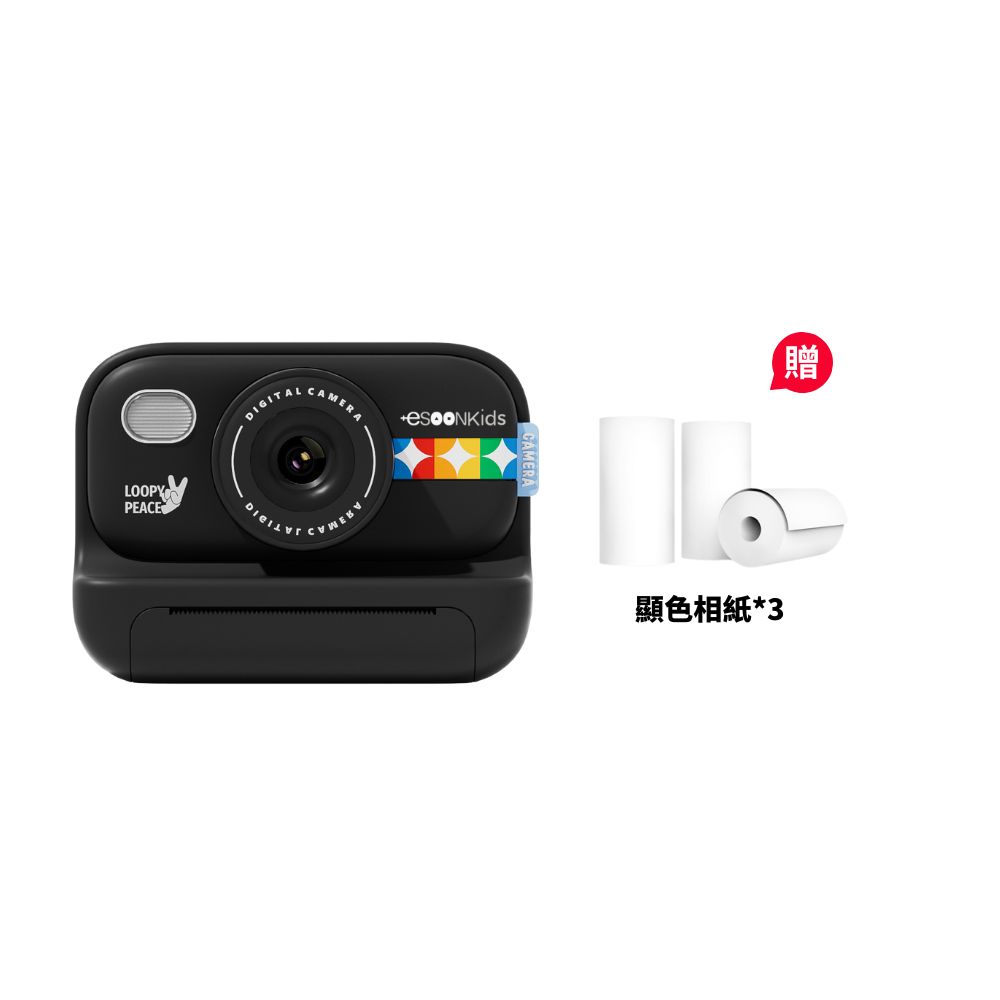 esoon esoonKids 潮玩拍立得 兒童相機 打印相機 商檢合格 最新升級款 一年保固 - 星光黑【贈三卷相紙】
