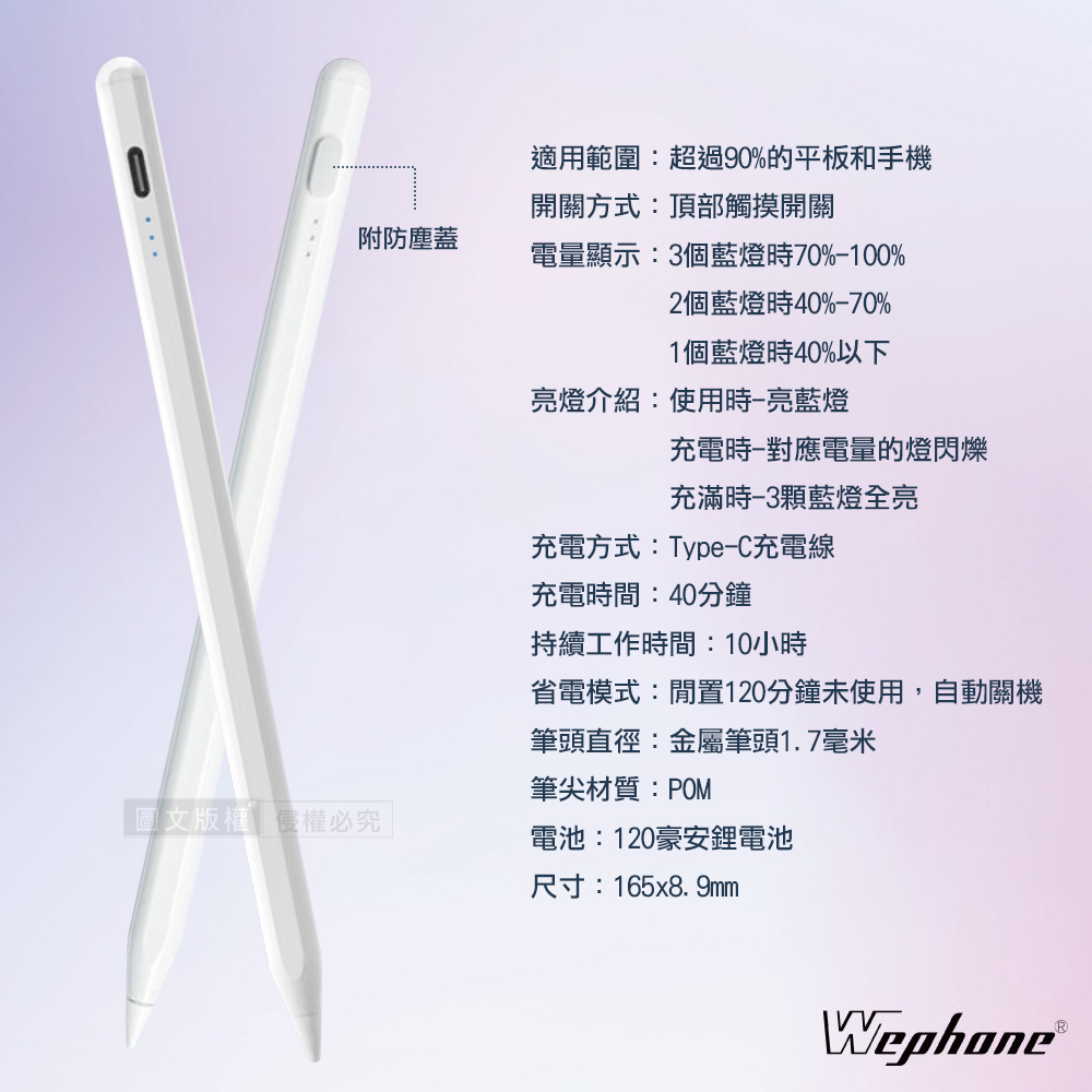 Wephone 即開即用 充電式觸控筆 iPad/安卓磁吸主動式電容筆 繪圖筆