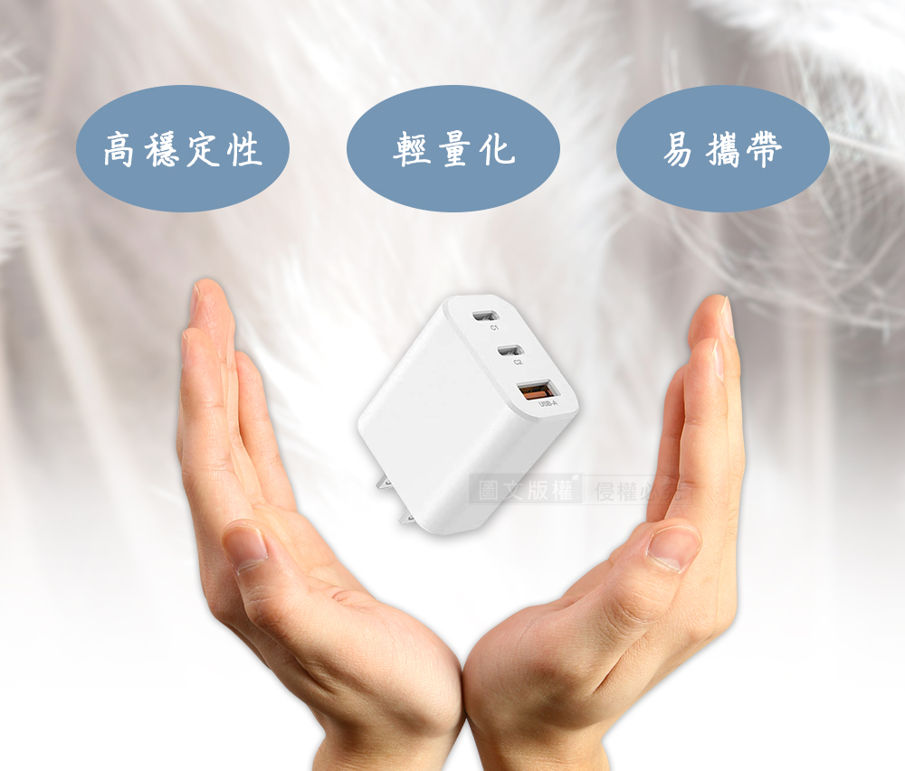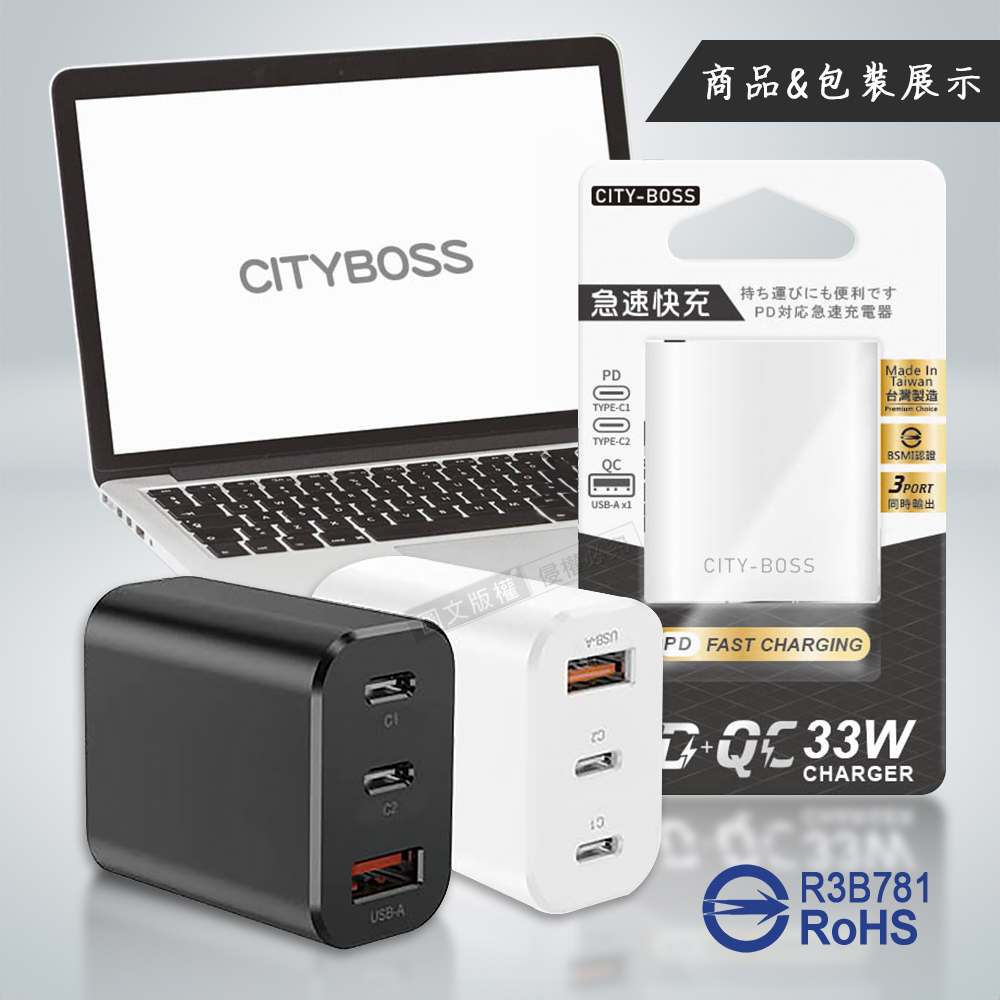 CITY 33W PD+QC多協議旅用3孔充電頭 急速充電器 安規認證 台灣製造(白色)