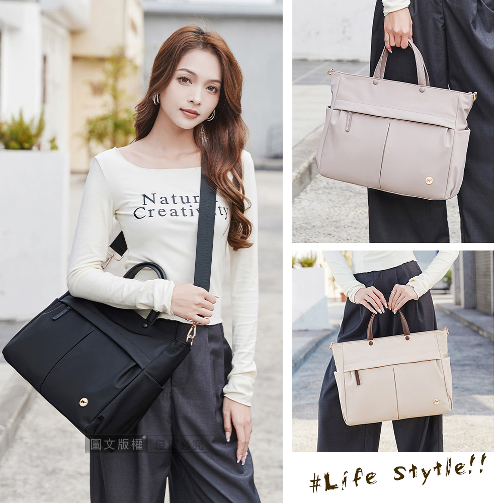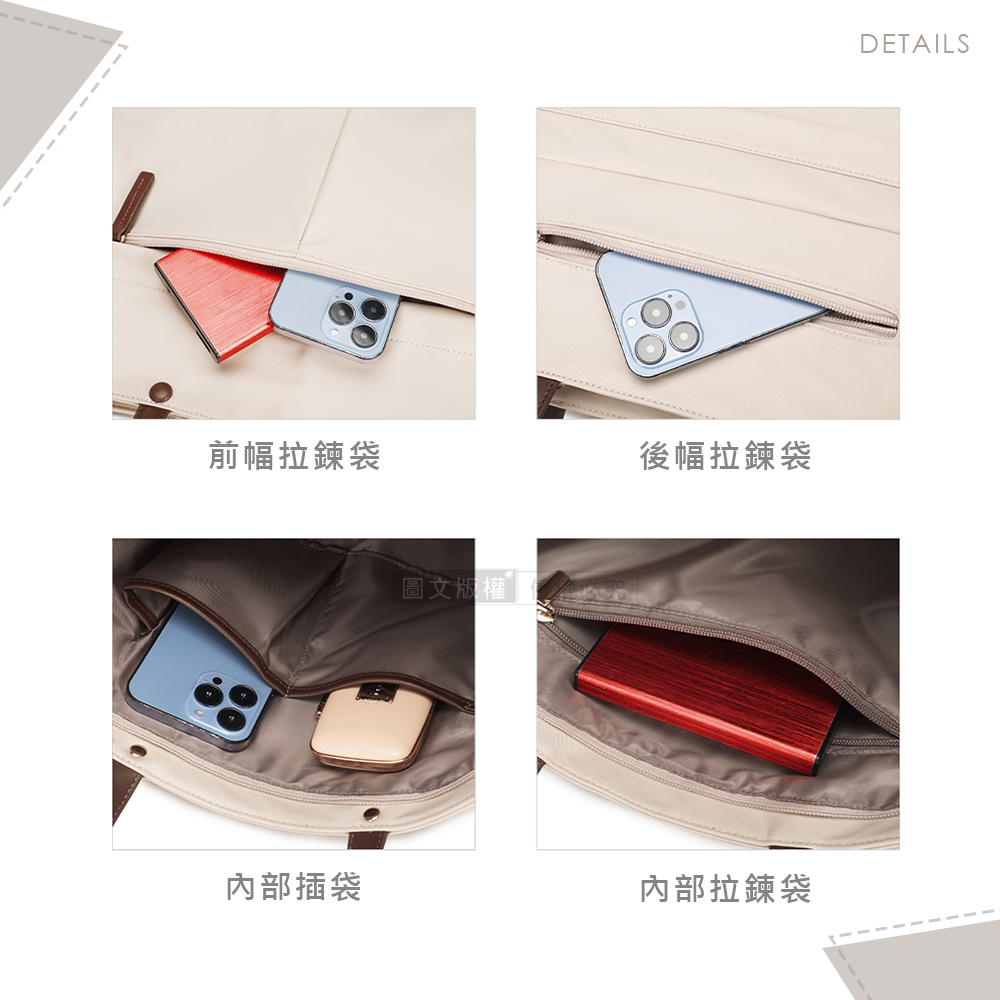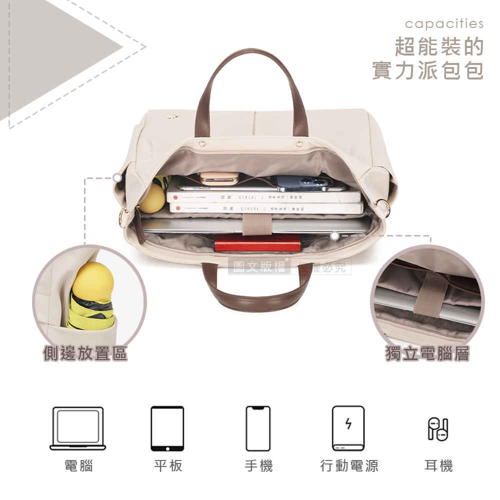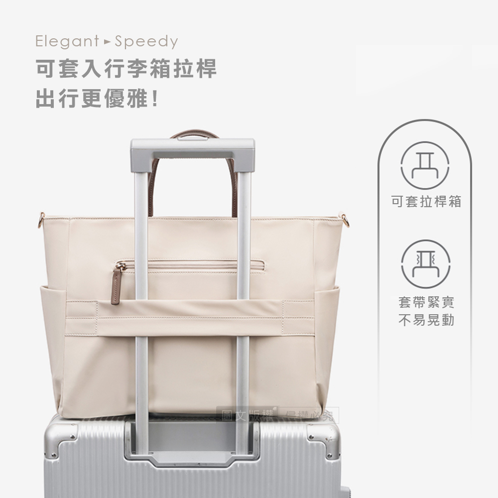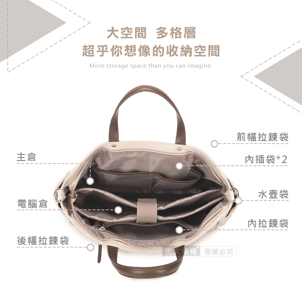 知性魅力 14吋 大容量多格層電腦包 防潑水獨立筆電層 斜背手提公事包(氣質杏)