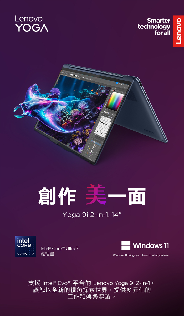 《Lenovo 聯想》Yoga 9 2-in-1 83AC001MTW(14吋4K/Ultra 7 155H/32G/1TB PCIe SSD/Win11P)
