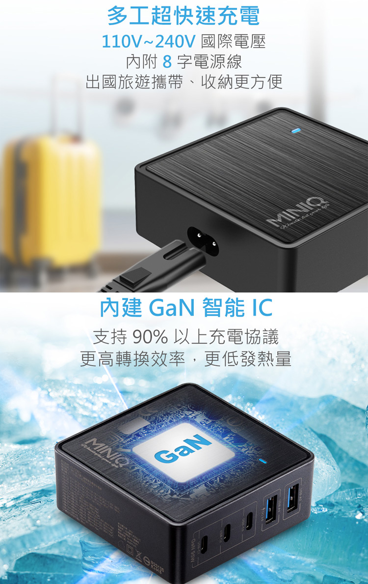 【MiniQ】AC-DK200T 五孔2A3C 95W 氮化鎵 5合1多孔排插旅充