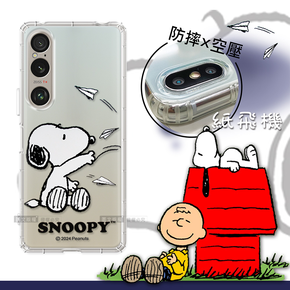 史努比/SNOOPY 正版授權 SONY Xperia 1 VI 六代 漸層彩繪空壓手機殼(紙飛機)