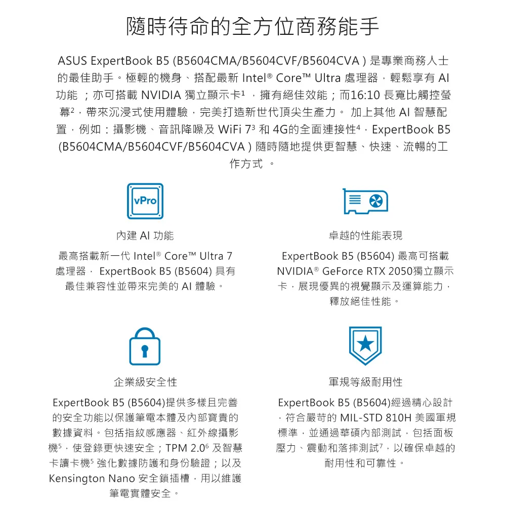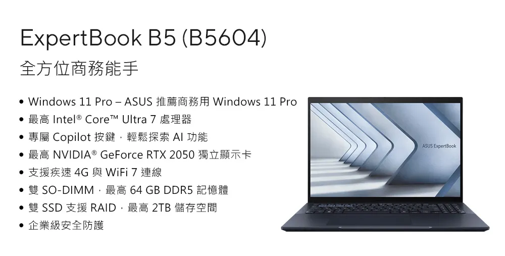 ASUS 華碩 B5604CMA-0121A125H(16"WUXGA/Ultra 5 125H/16G/1TB/W11P/3Y) 商用筆電 AI