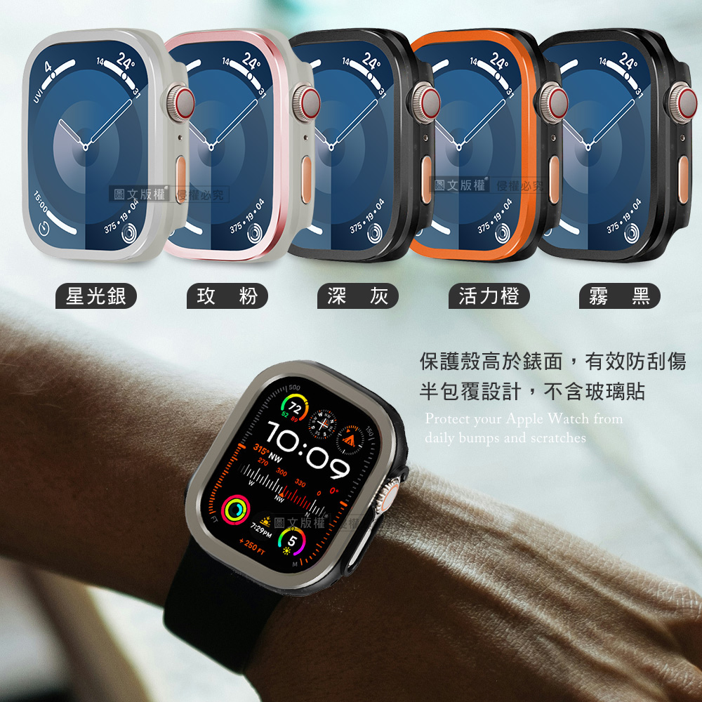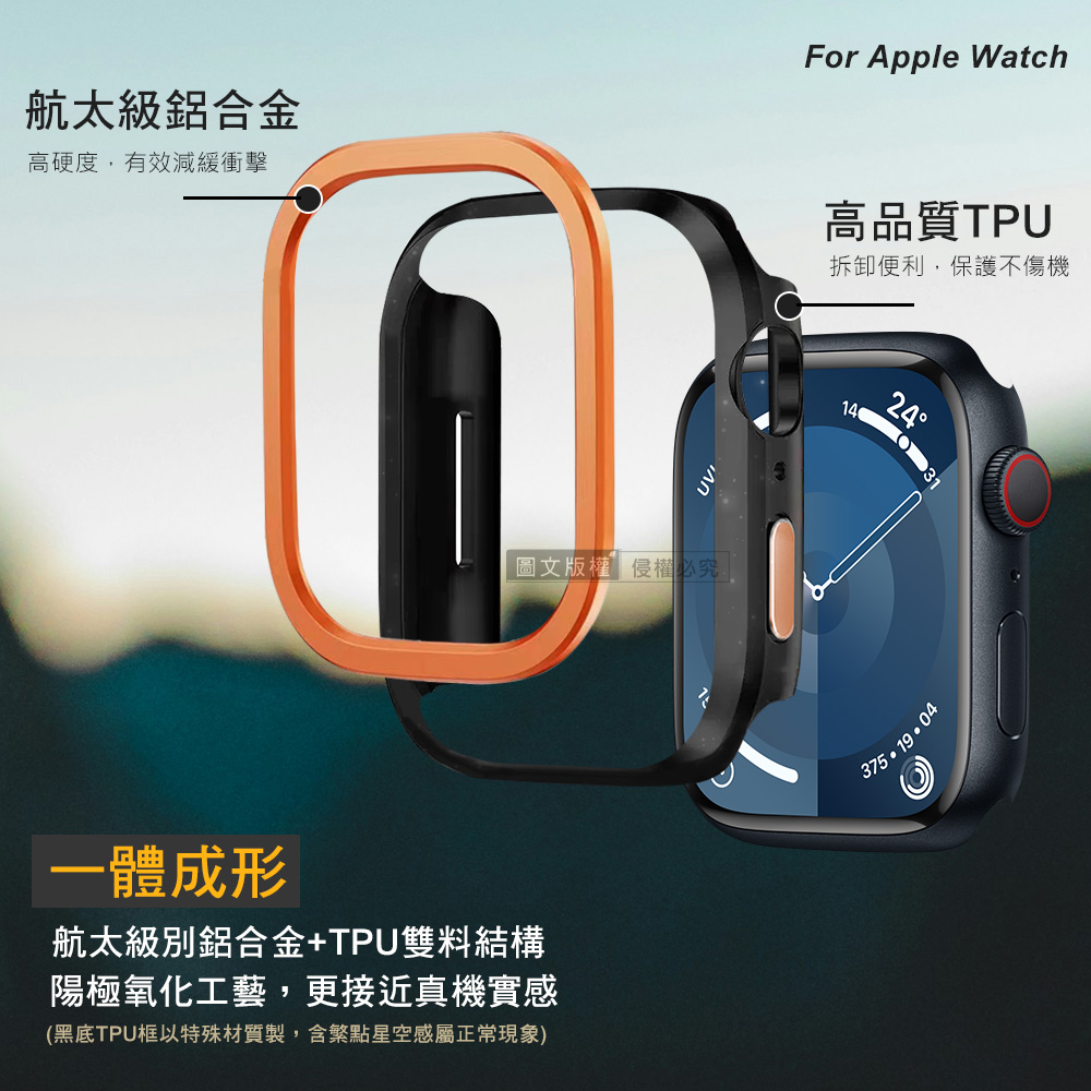 航空合金 耐衝擊 Apple Watch Series 9/8/7 41mm 二合一雙料殼邊框保護殼(深灰)