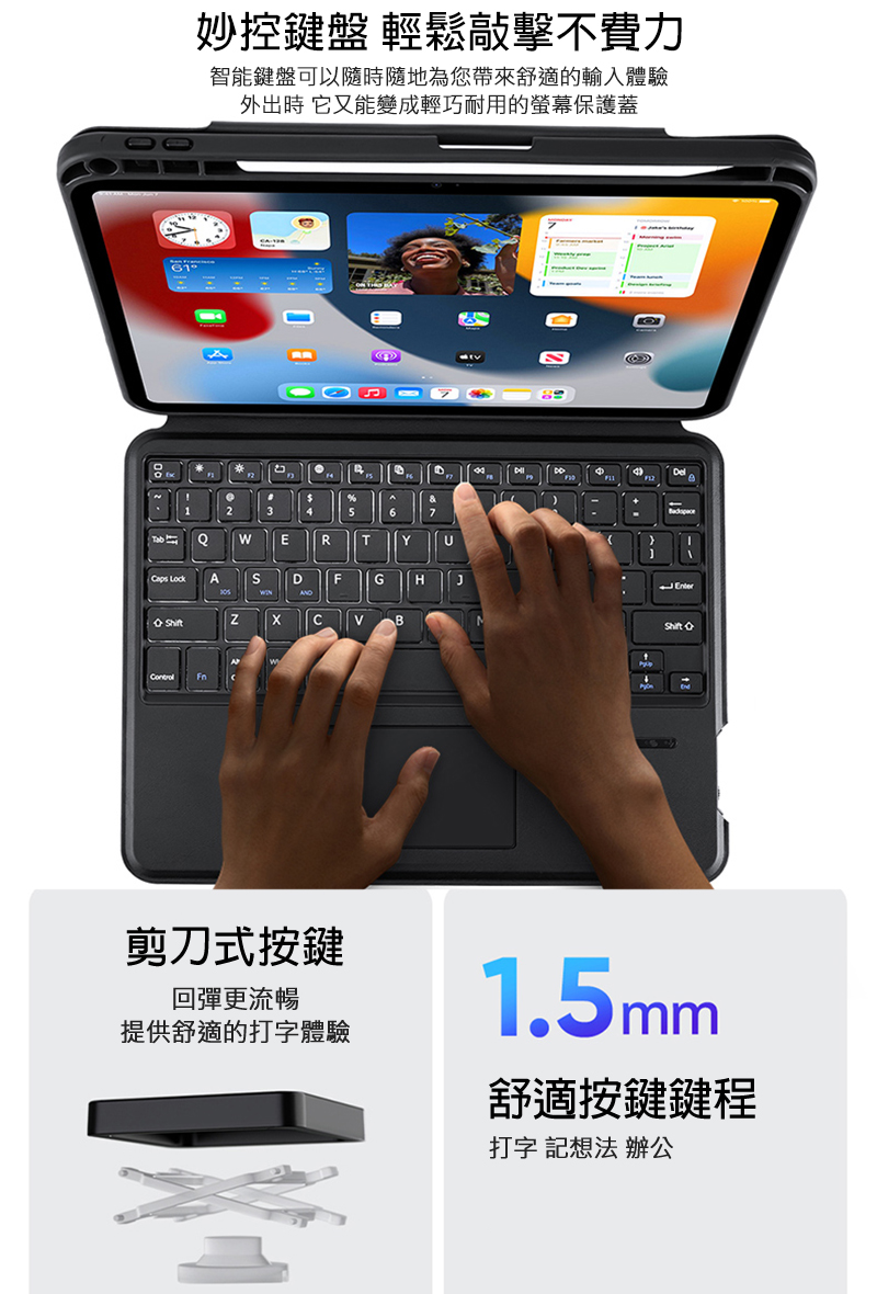 .剪刀式結構按鍵,回彈更流暢,1.5mm 鍵程,手感絕佳