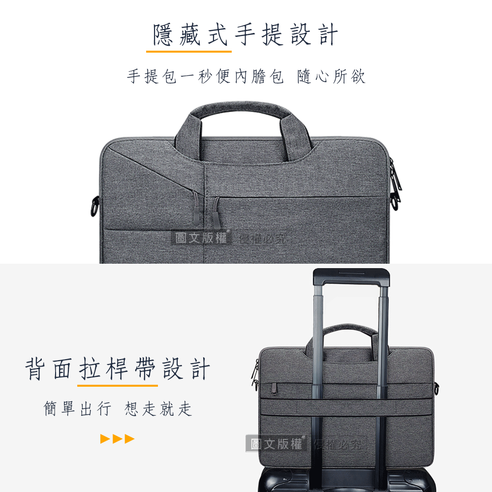 14/15.4吋 經典商務 隱藏手提 防潑水多層收納 側背內膽包 輕便平板筆電防震包(沉穩深灰)