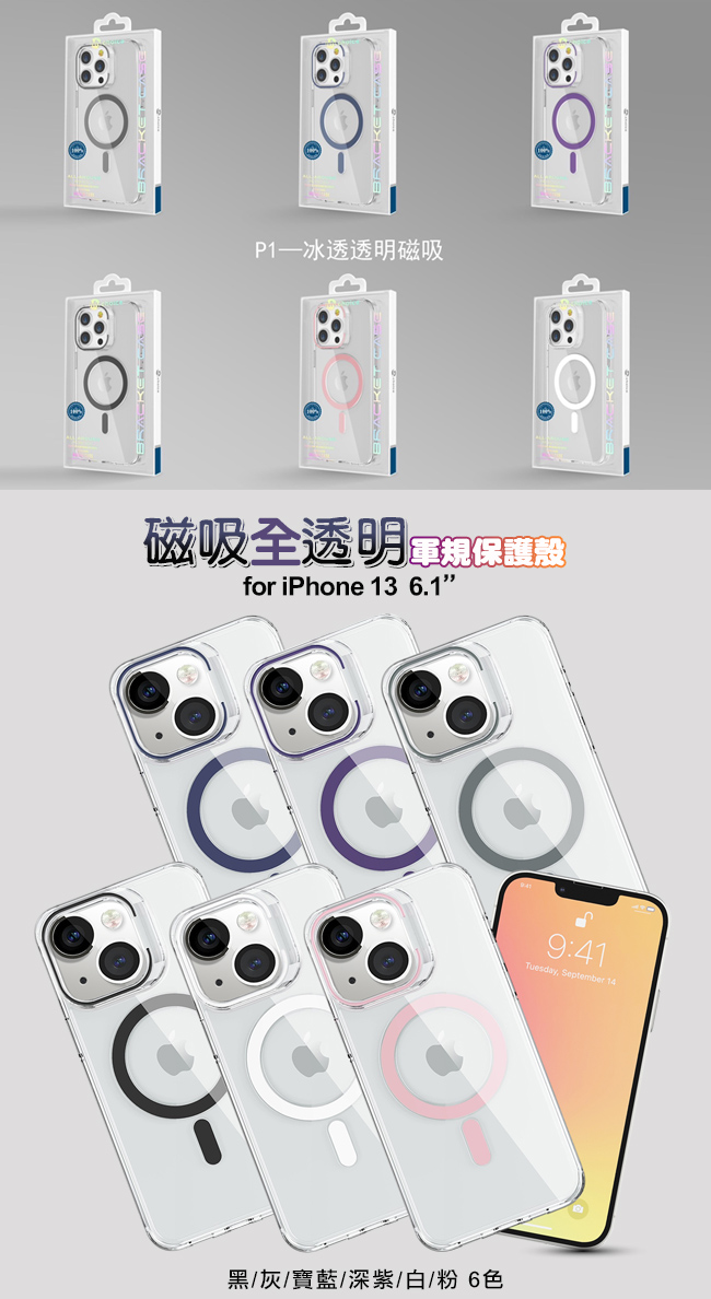 CITY BOSS for iPhone 13 6.1 磁吸全透明軍規保護殼-黑