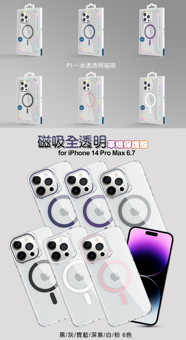 CITY BOSS for iPhone 14 Pro Max 6.7 磁吸全透明軍規保護殼-灰
