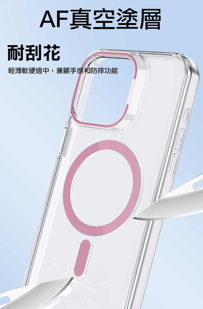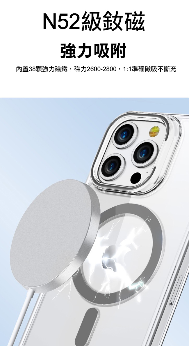 鏡頭周圍加高防護, 四角加上緩衝氣囊設計, 防震更耐摔