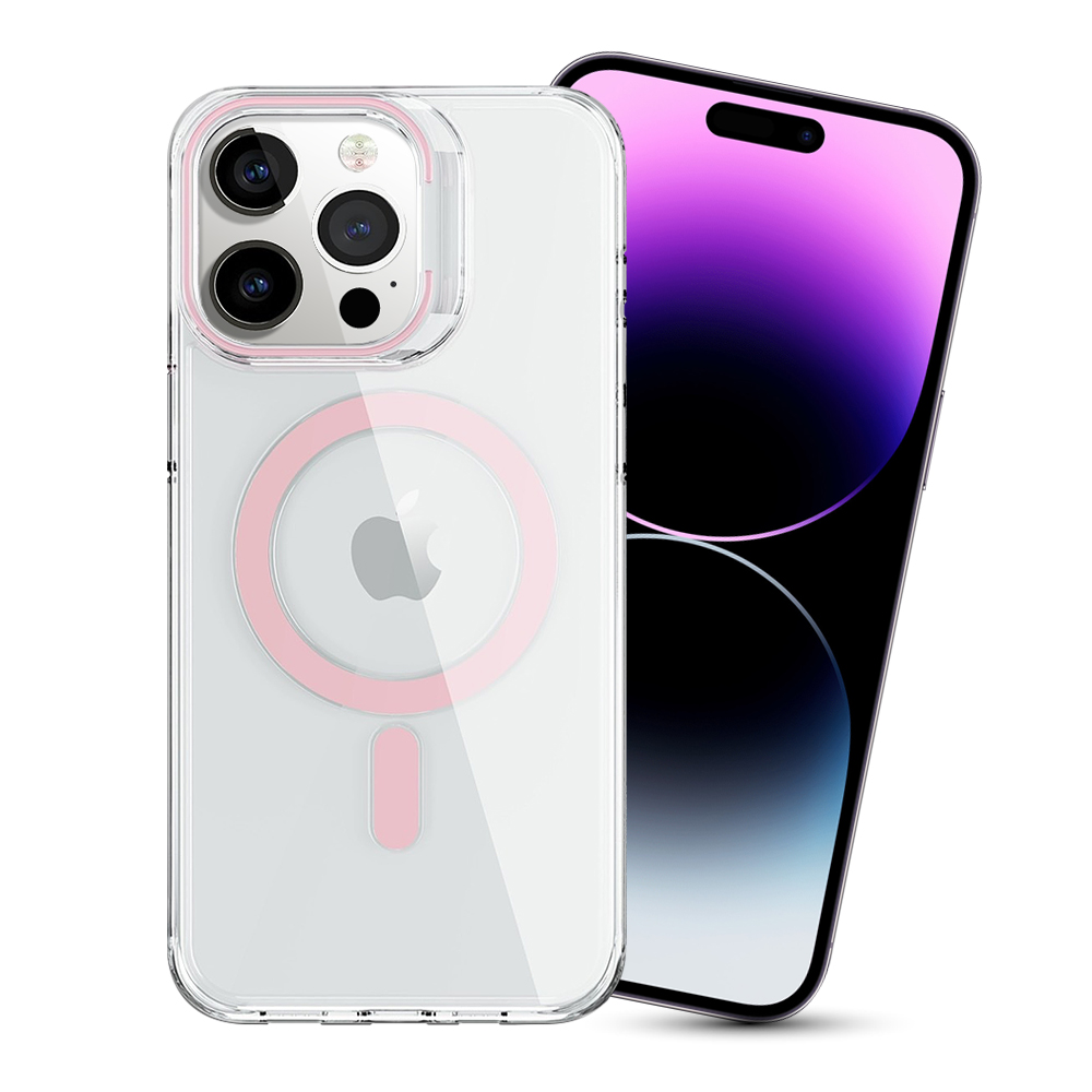 CITY BOSS for iPhone 14 Pro Max 6.7 磁吸全透明軍規保護殼-粉