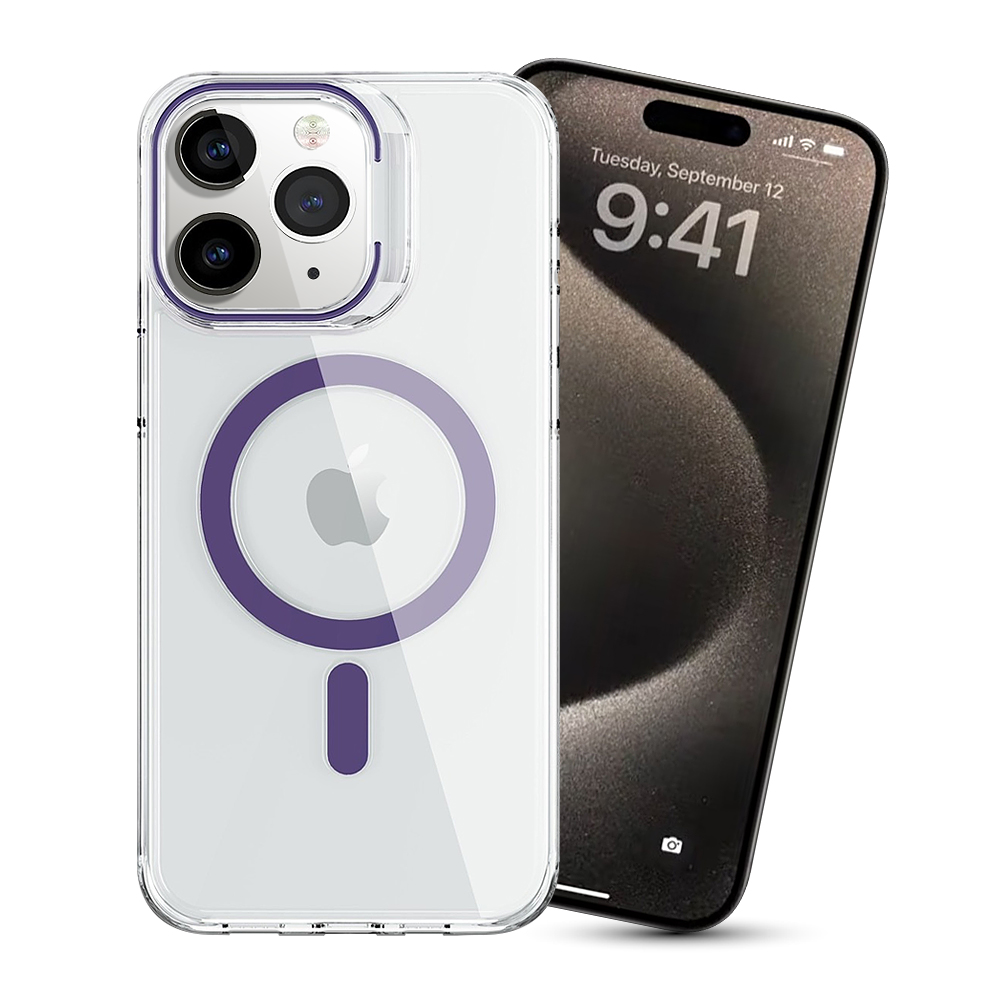CITY BOSS for iPhone 15 Pro 6.1 磁吸全透明軍規保護殼-紫