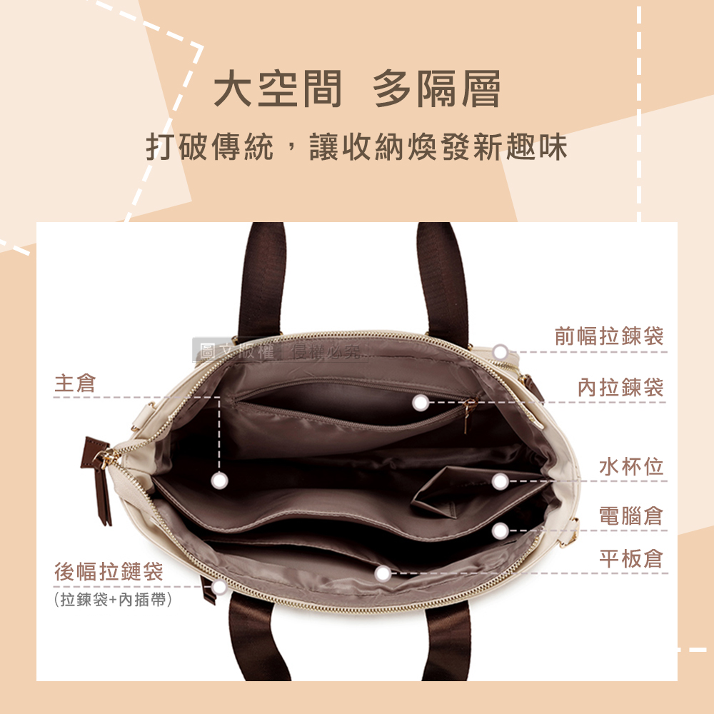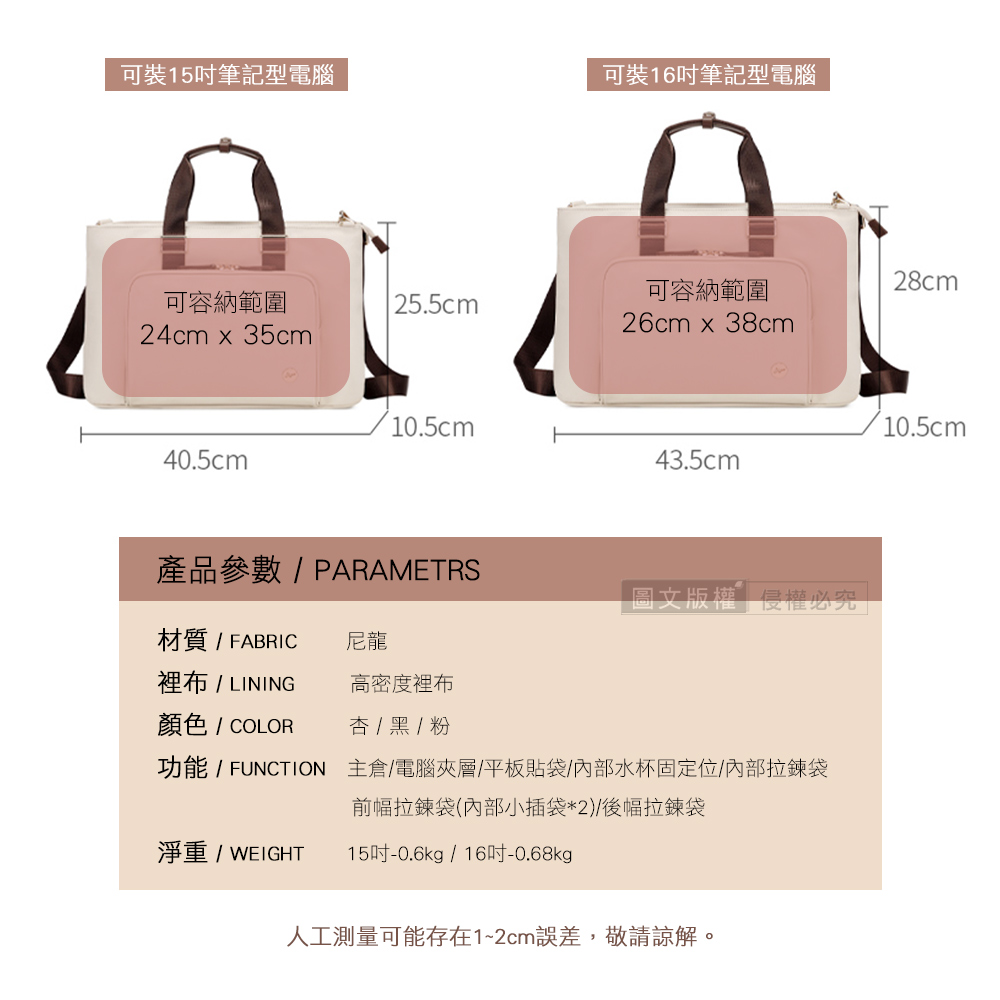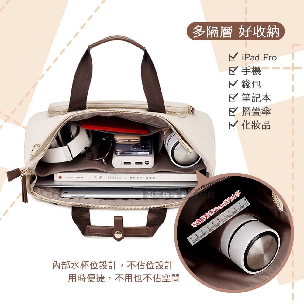 粉領時尚 16吋 立體大空間商務包 多功能拉桿套拉鍊袋 斜背手提公事包(優雅粉)