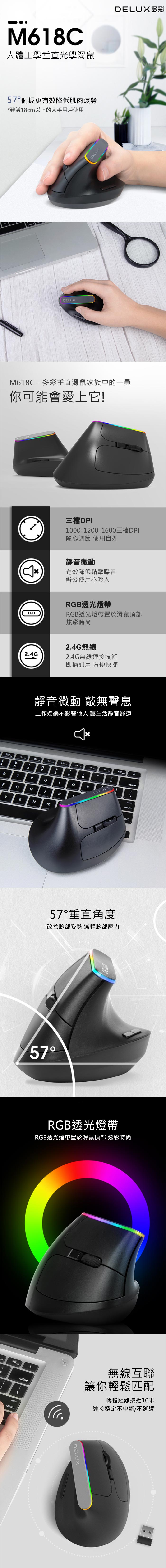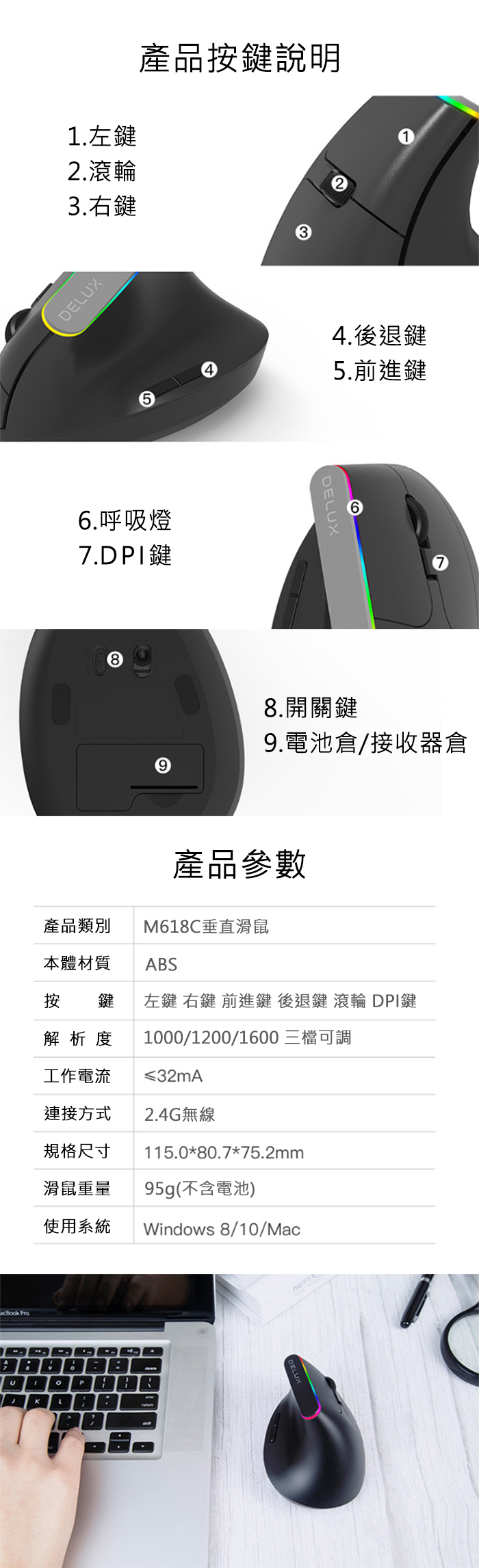 .垂直側握設計,舒適提升,告別滑鼠手