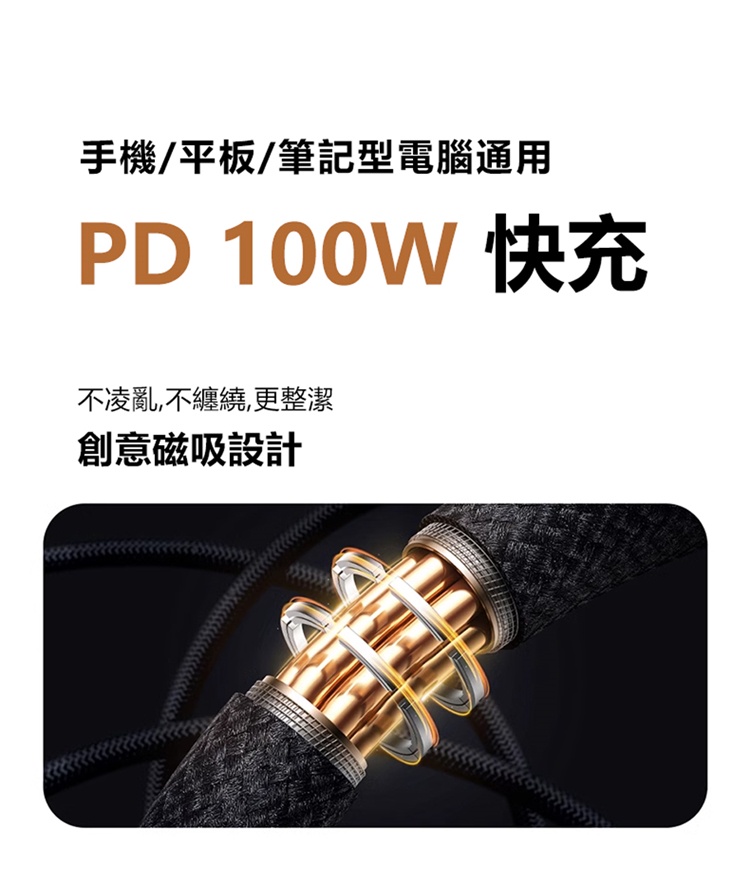 內容物:鎢金系列磁吸快充數據線CB000097 C to C 100W 1m 星曜黑