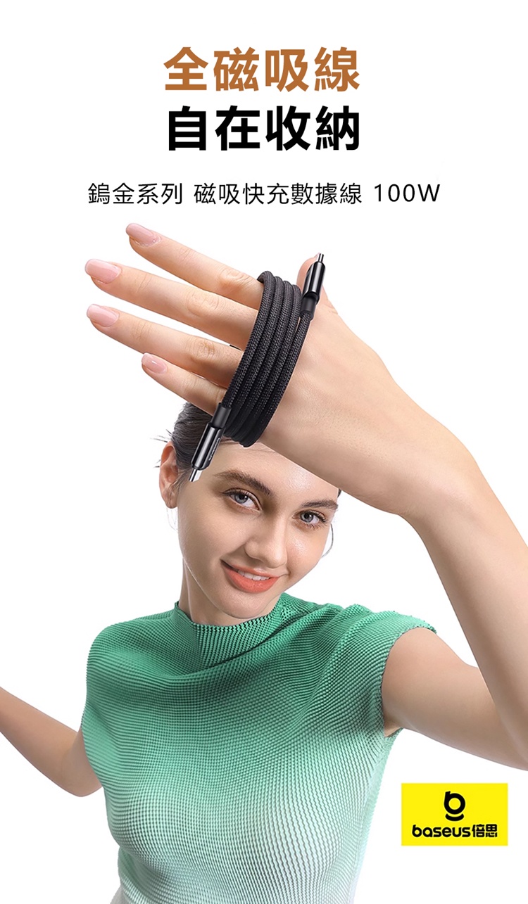 Baseus倍思 鎢金系列100W磁吸快充數據線CB000097 C to C 1m