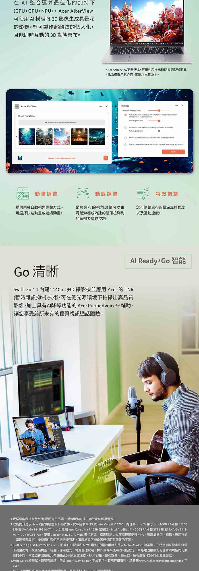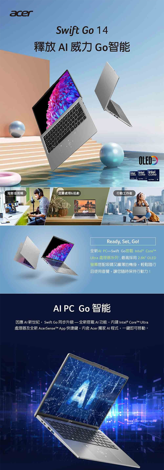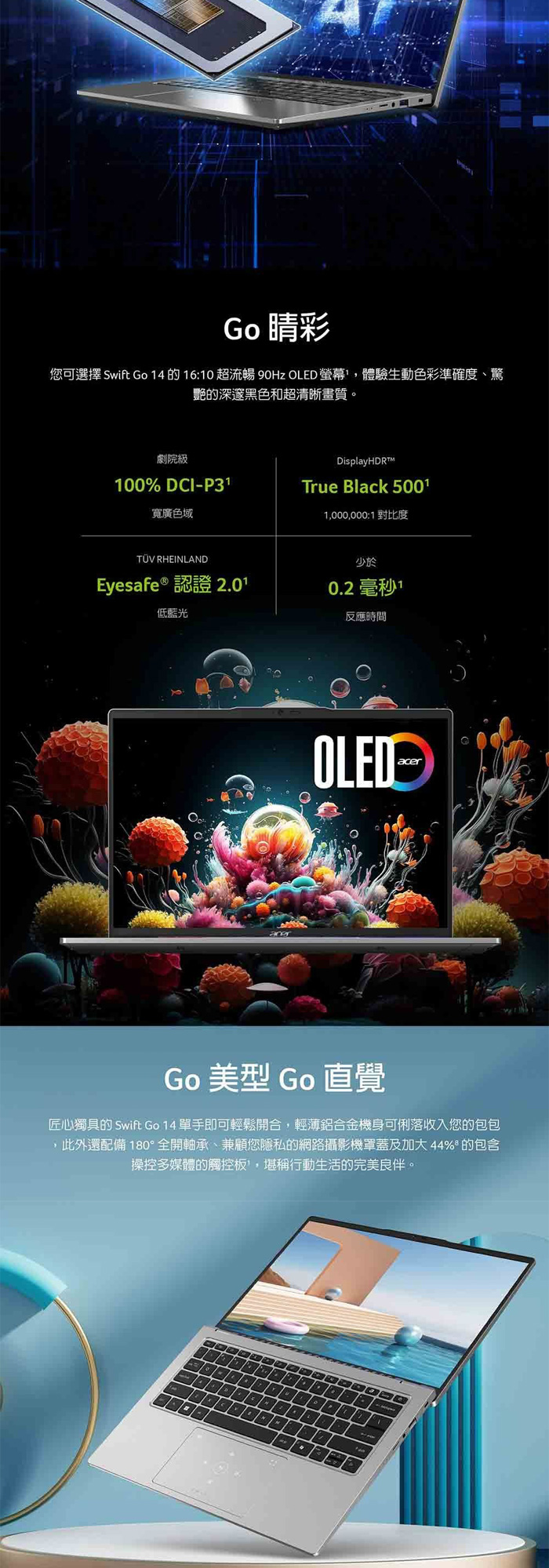 《Acer 宏碁》SFG14-73-731T(14吋2.8K/Ultra 7 155H/16G/512G+1TB PCIe SSD/Win11/特仕版)