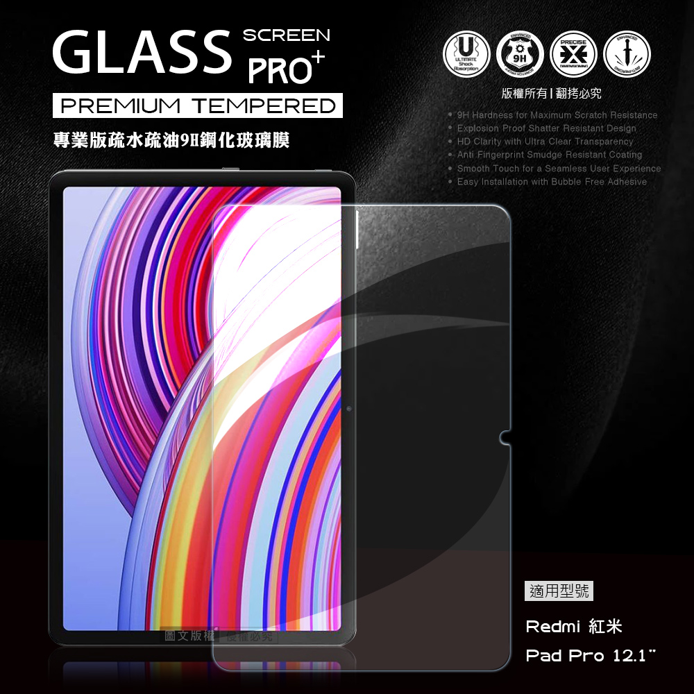 VXTRA 紅米Redmi Pad Pro 12.1吋 經典皮紋三折皮套(格蕾紫)+9H鋼化玻璃貼(合購價)
