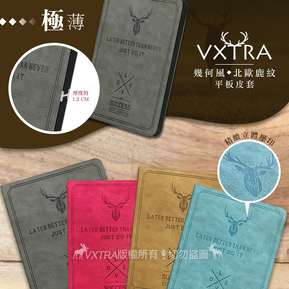 二代筆槽版 VXTRA 2025/2024 iPad Pro 13吋 北歐鹿紋平板立架皮套 保護套(蒂芬藍綠)