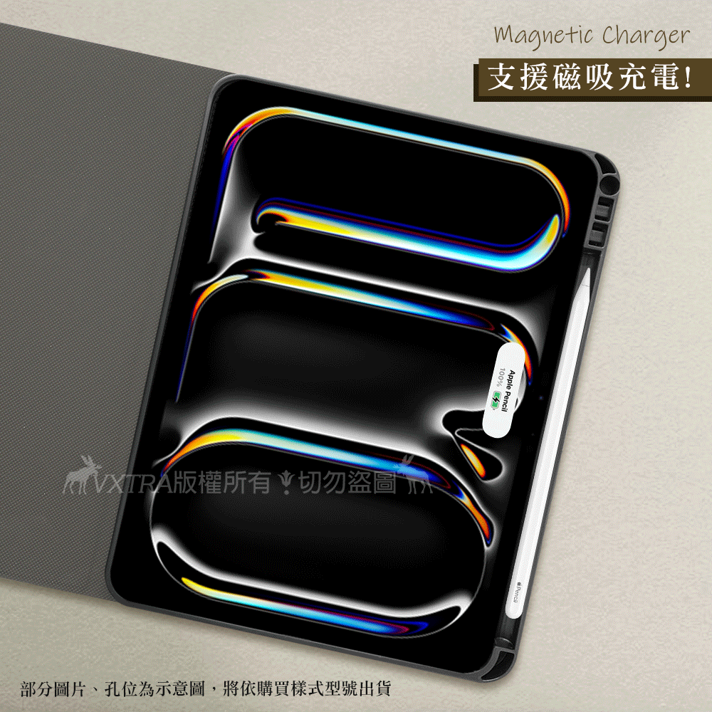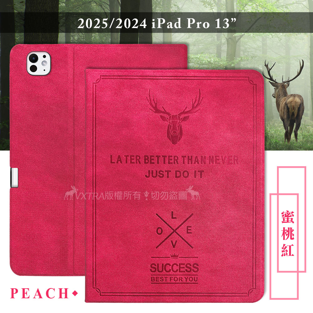 二代筆槽版 VXTRA 2025/2024 iPad Pro 13吋 北歐鹿紋平板立架皮套 保護套(清水灰)
