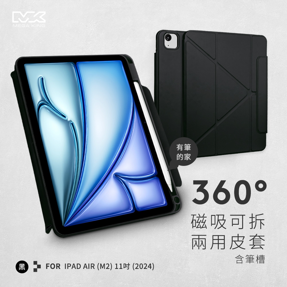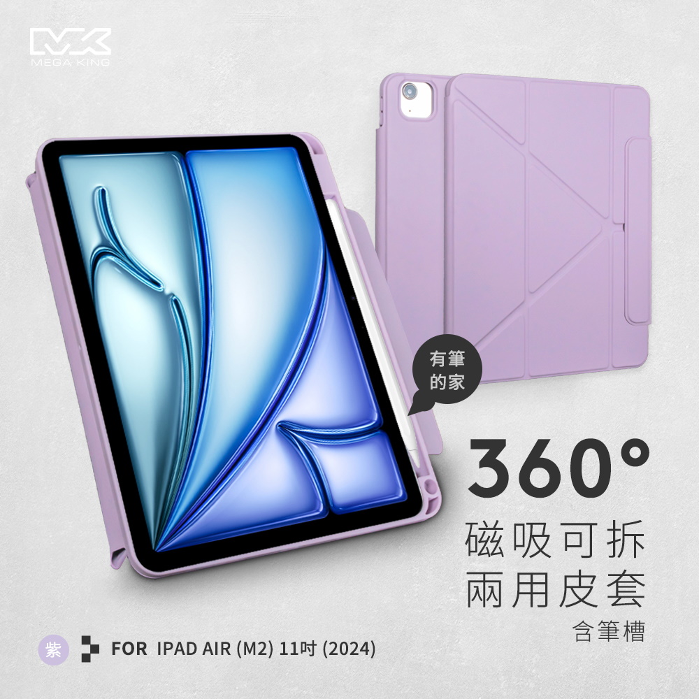 MEGA KING 360° 磁吸可拆兩用皮套含筆槽 iPad Air(M2/M3) 11吋 紫