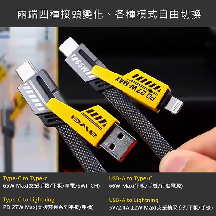 AWEI 機甲四合一快充傳輸線 PD65W 27W 編織快速充電線(1M)