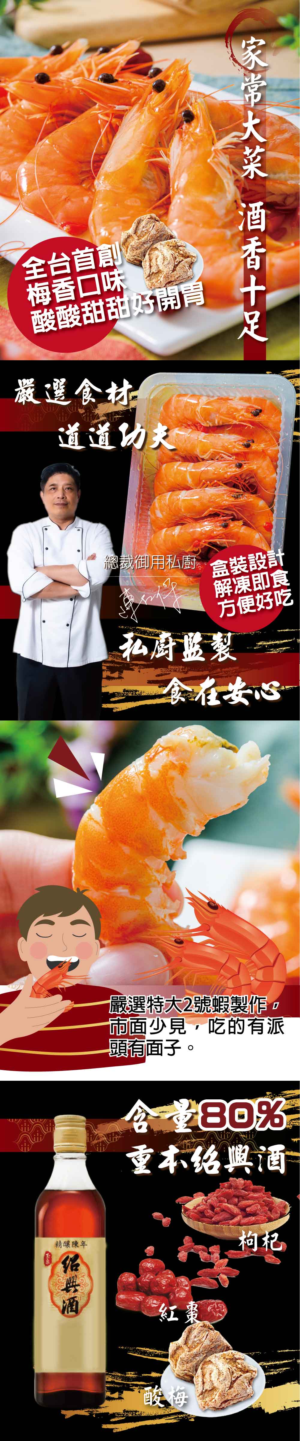 【鮮綠生活】冰梅紹興醉蝦(10隻一盒)共8包