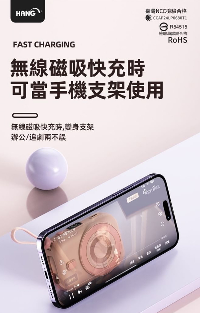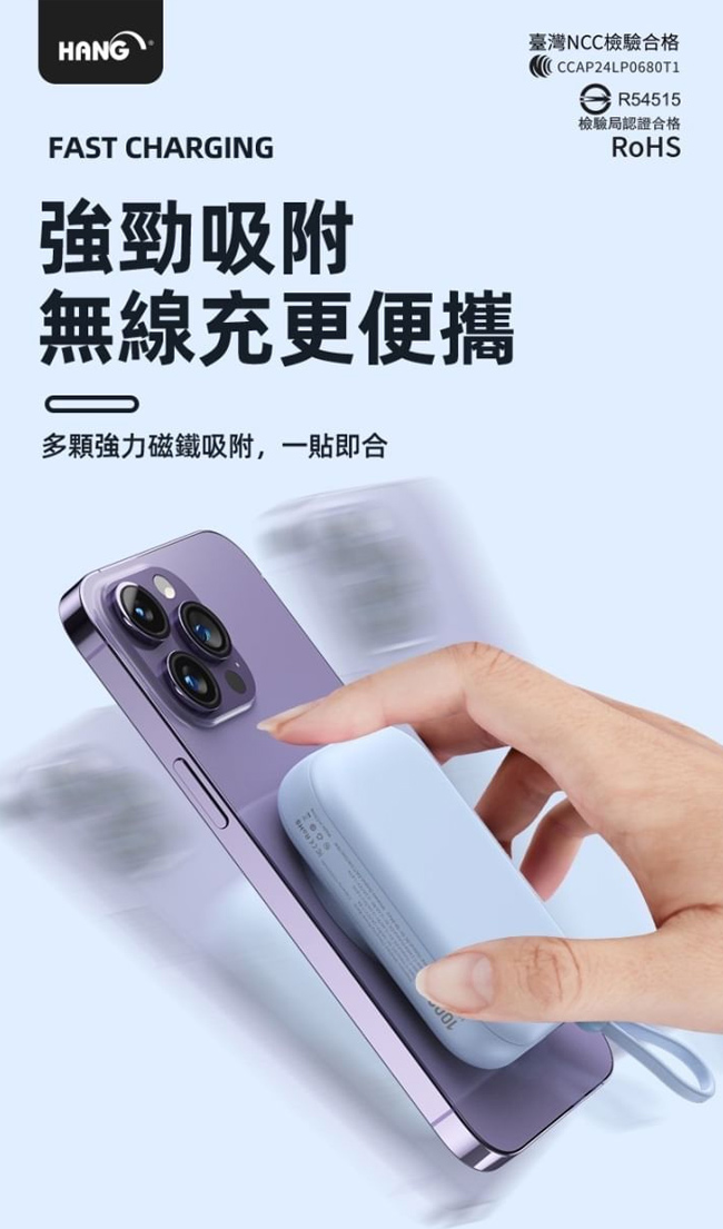 HANG PDC 10000mAh PD20W 無線磁吸自帶線