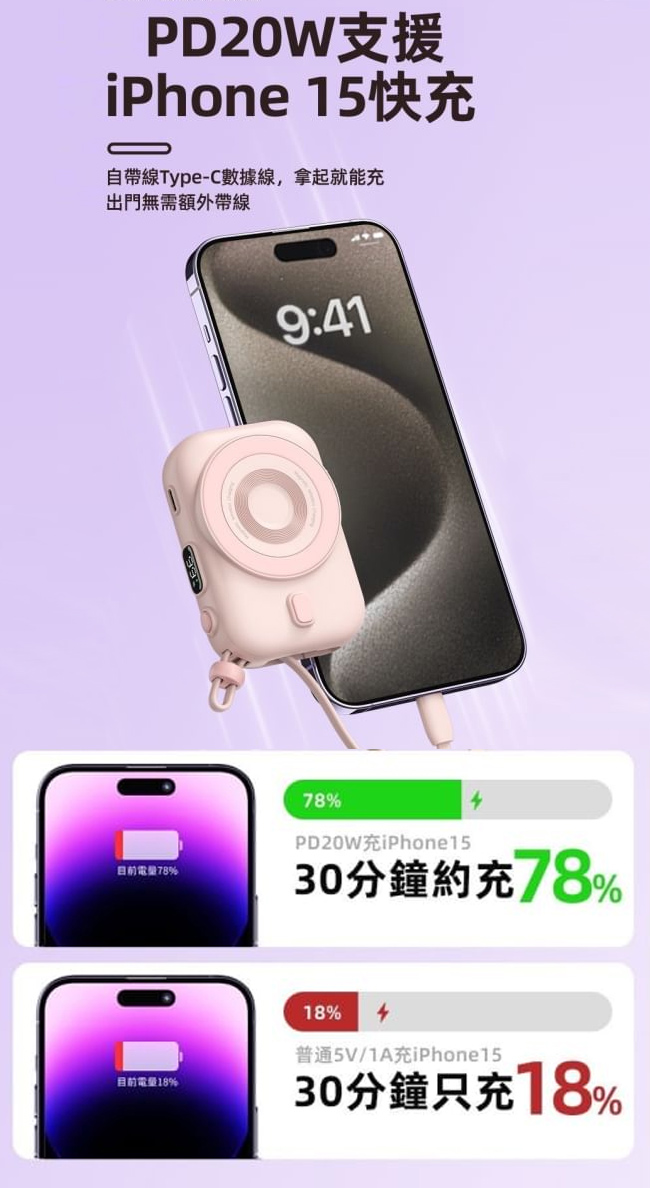 快充PD蘋果、QC全兼容快充,經典自帶線更方便