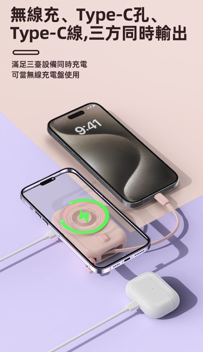 無線充、Type-c孔、Type-c線,三方同時輸出