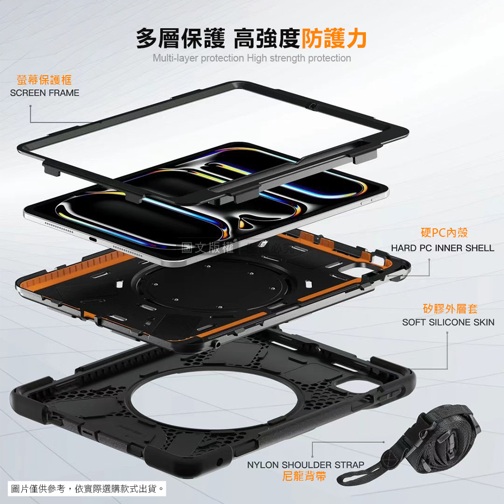 盔甲MAX 2025/2024 iPad Pro 13吋 全包覆矽膠PC硬蓋防摔保護殼套 360度旋轉支架 附側背帶(活力亮粉)