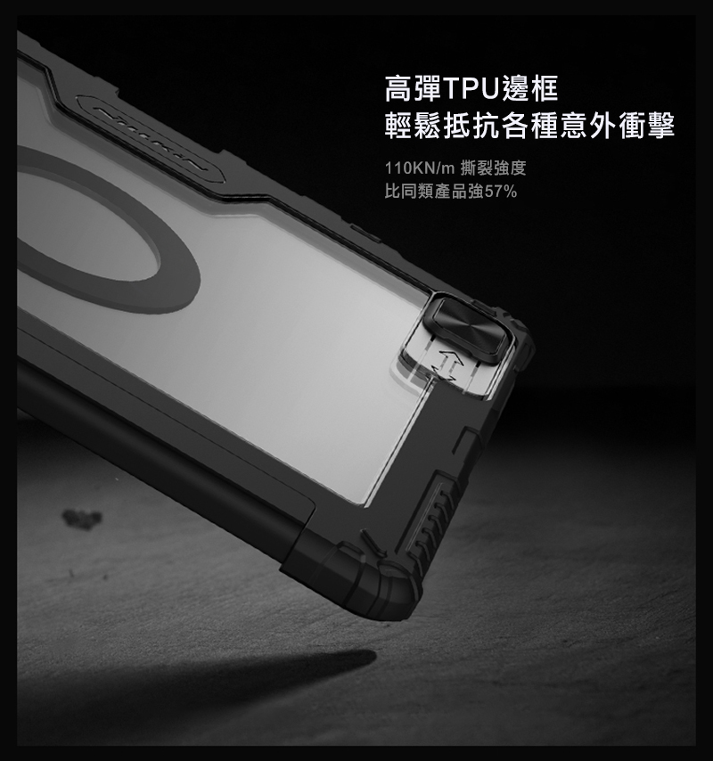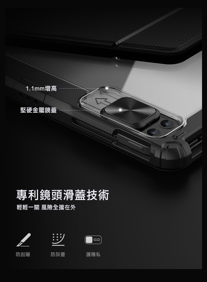 .360°全包保護,搭配鏡頭滑蓋設計,符合美國軍工跌落測試標準