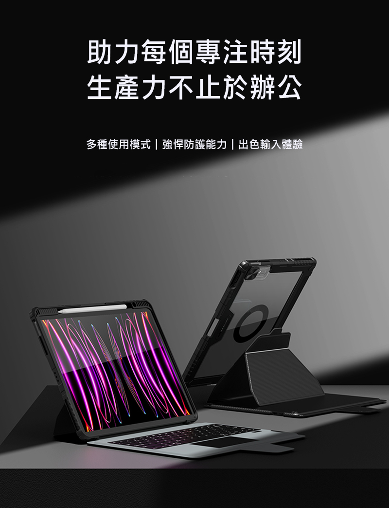 NILLKIN Apple iPad Air 13 (2024/M2)/iPad Pro 12.9 (2018~2022) 悍靈鍵盤保護套(背光版)(灰色)