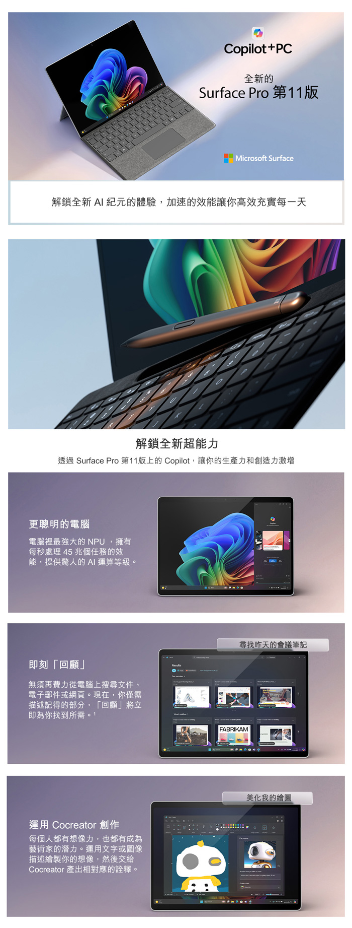 (有筆有槽鍵盤蓋石墨黑含AI鍵)微軟 Microsoft Surface Pro 11 (Snapdragon X Plus/16G/512G)白金