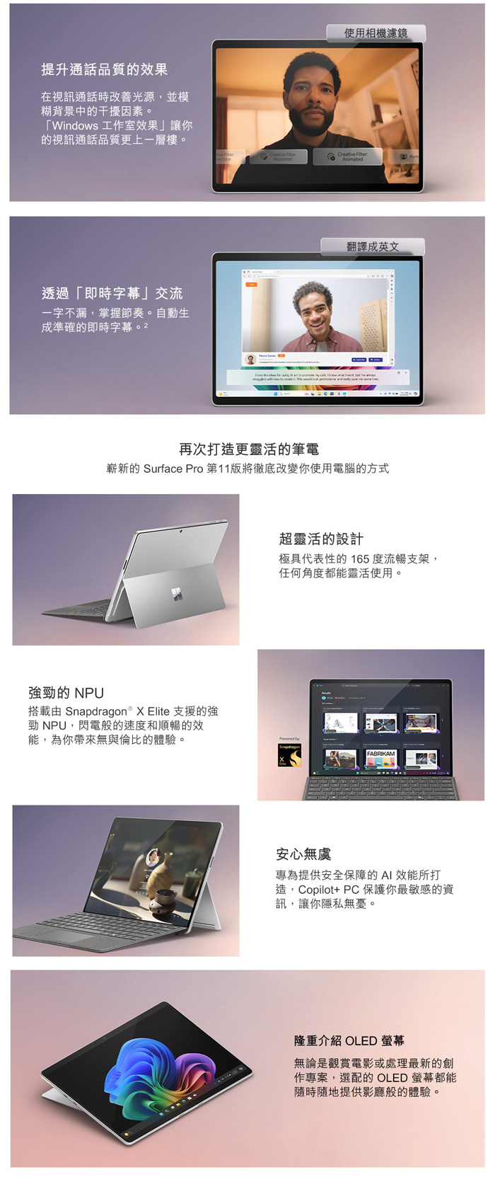 (無筆鍵盤蓋含AI鍵)微軟 Microsoft Surface Pro 11 (Snapdragon X Elite/16G/512G)白金