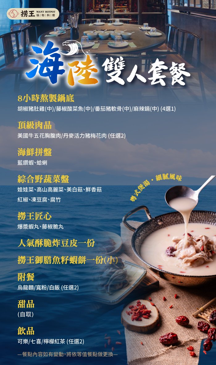 【台北】撈王平日超值限定海陸雙人套餐