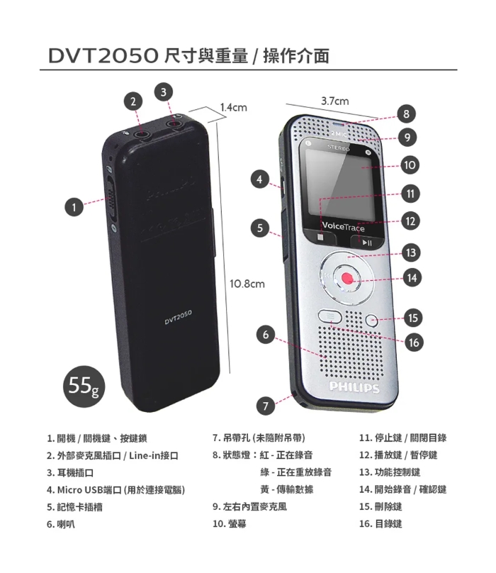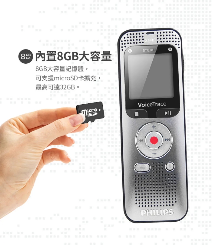 PHILIPS 飛利浦 數位多功能立體聲錄音筆 DVT2050