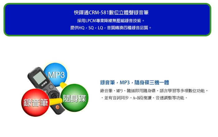 Abee 快譯通 專業降噪通數位立體聲錄音筆(8G) CRM-581