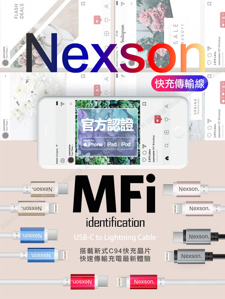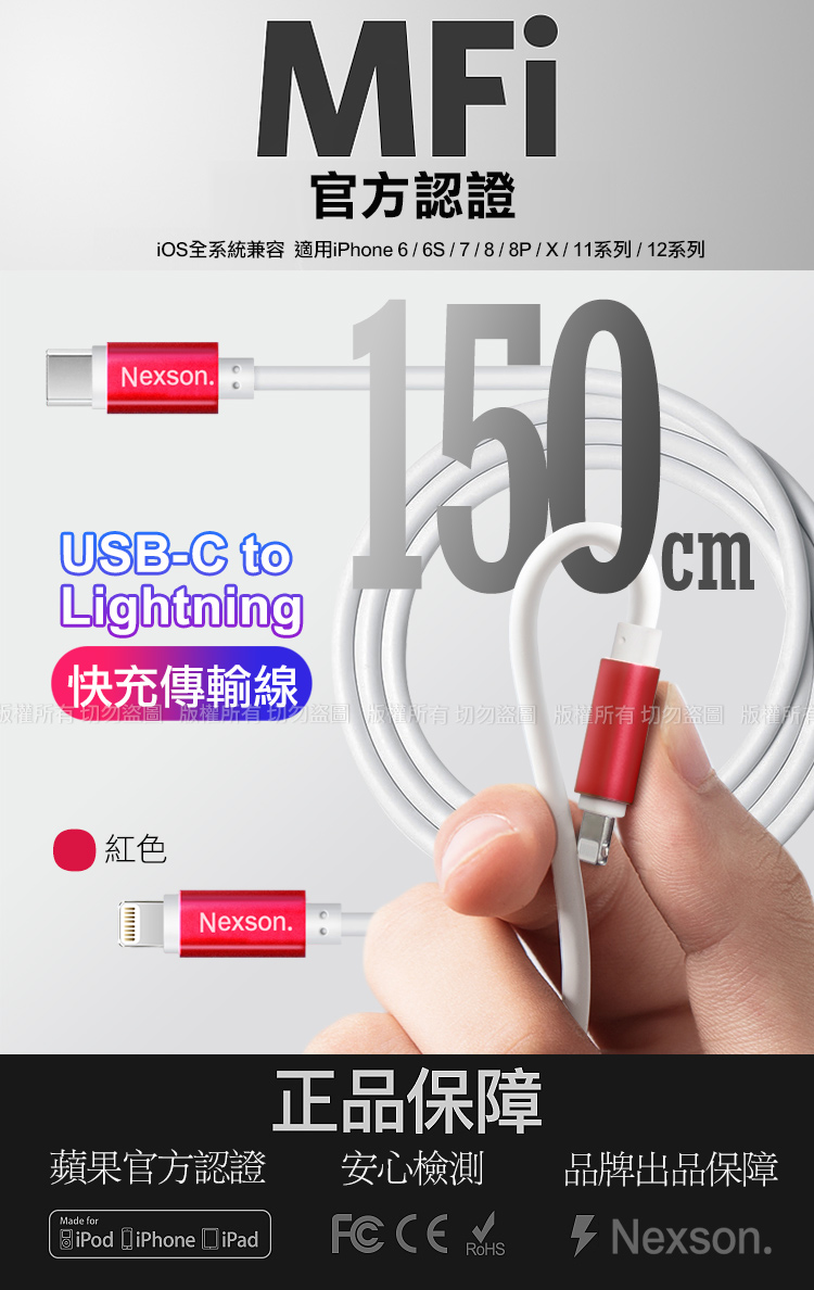 NEXSON通海 for Apple MFI蘋果認證 C to Lightning PD閃充線-150cm