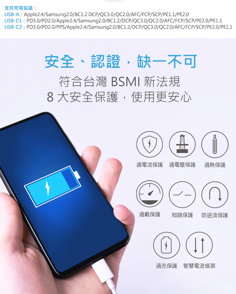 符合台灣BSMI法規 8大安全保護 使用更安心