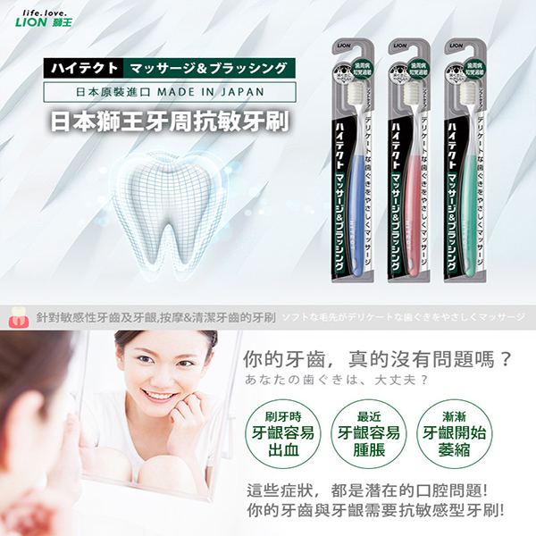 日本獅王牙周淨護牙刷1入(顏色隨機出貨)*3支