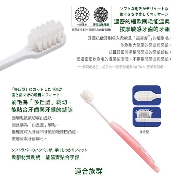 高密度柔軟細毛,平均分散刷牙時產生之不當壓力