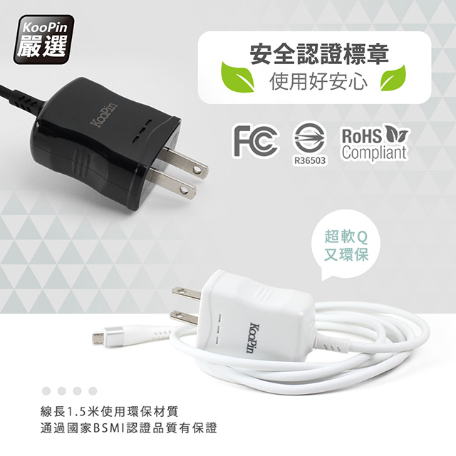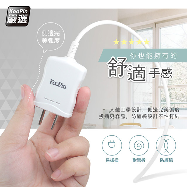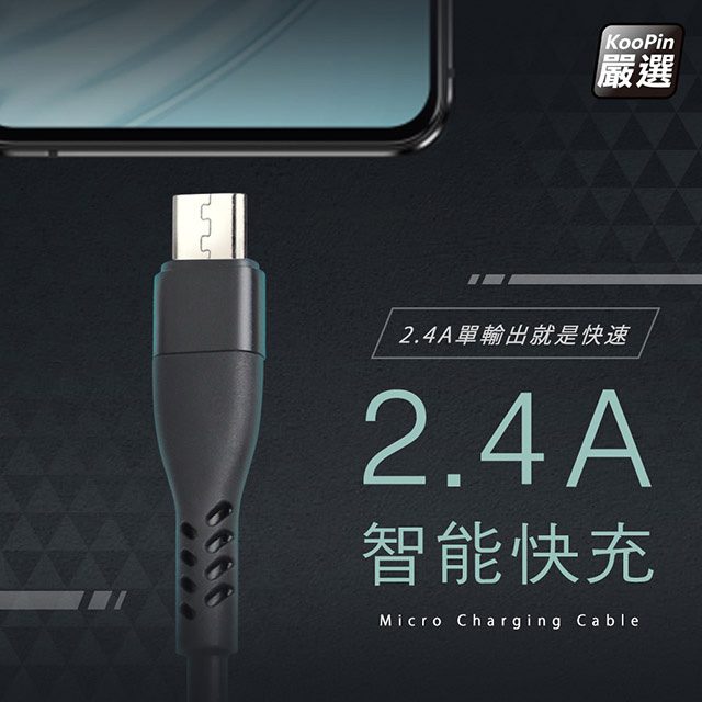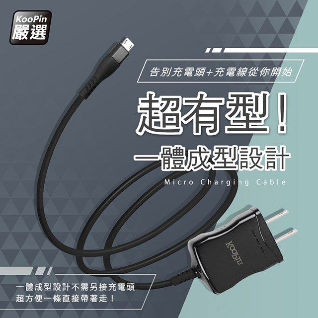 【KooPin】高效能超急速2.4A一體成型插座充電線1.5M(Micro)