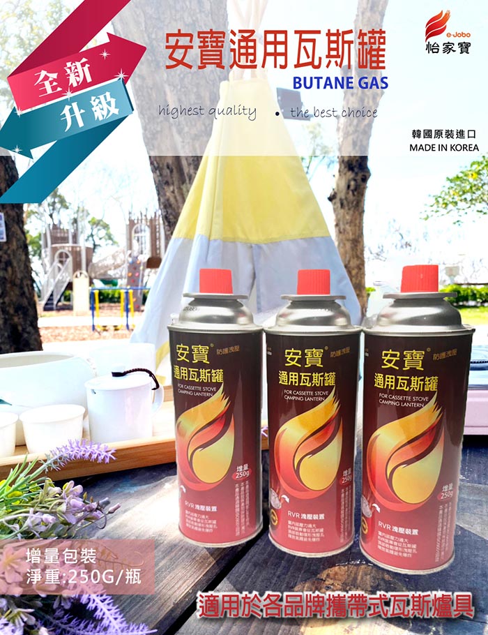 【E-JOBO 怡家寶】韓國進口安寶通用瓦斯罐x3瓶(250g/瓶)