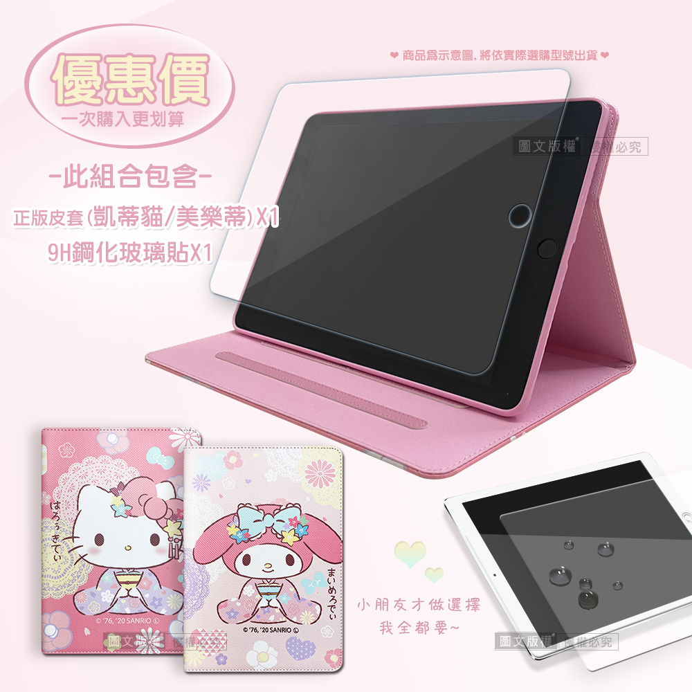 正版授權 美樂蒂/凱蒂貓 2025/2024 iPad Pro 13吋 和服限定款 平板皮套(凱蒂)+9H玻璃貼(合購價)